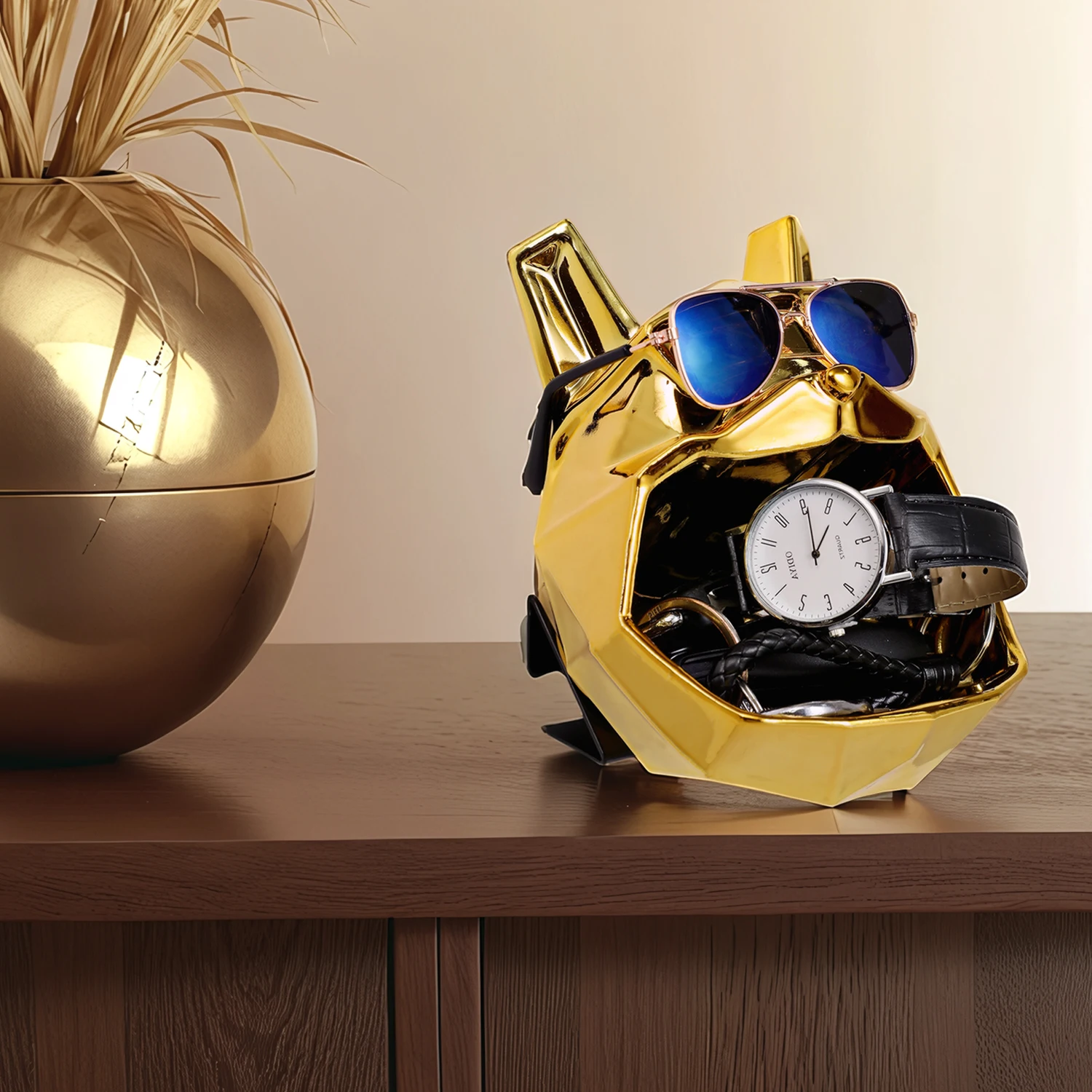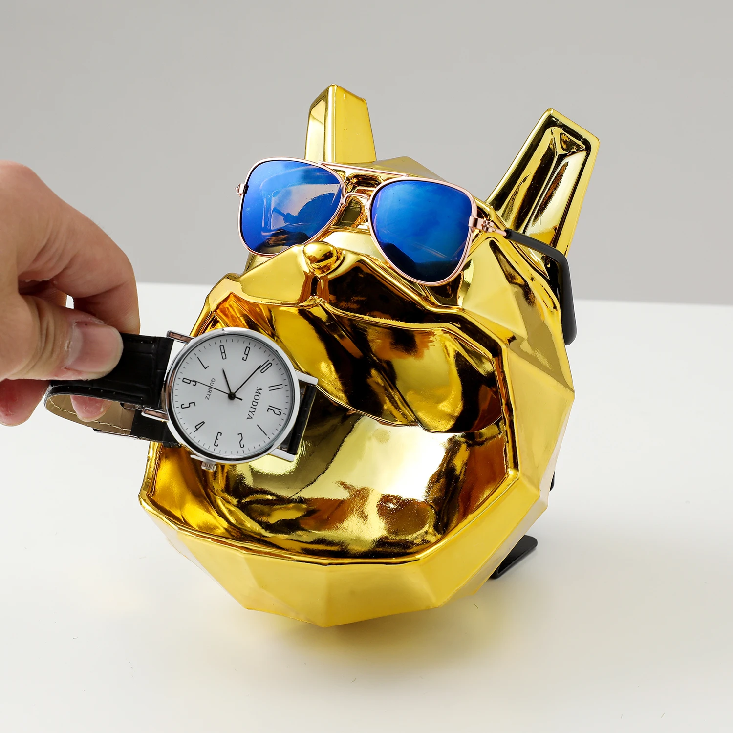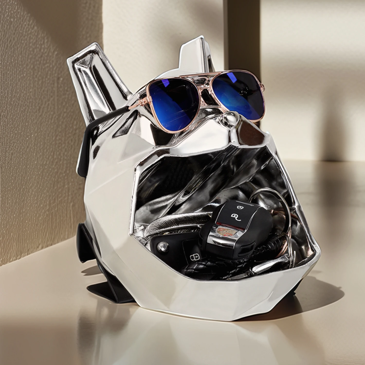Polygon Bulldog Dog Head Figurine with Storage Electroplating Golden Silver Solid Synthetic Resin Sculpture Figurine Home Decor