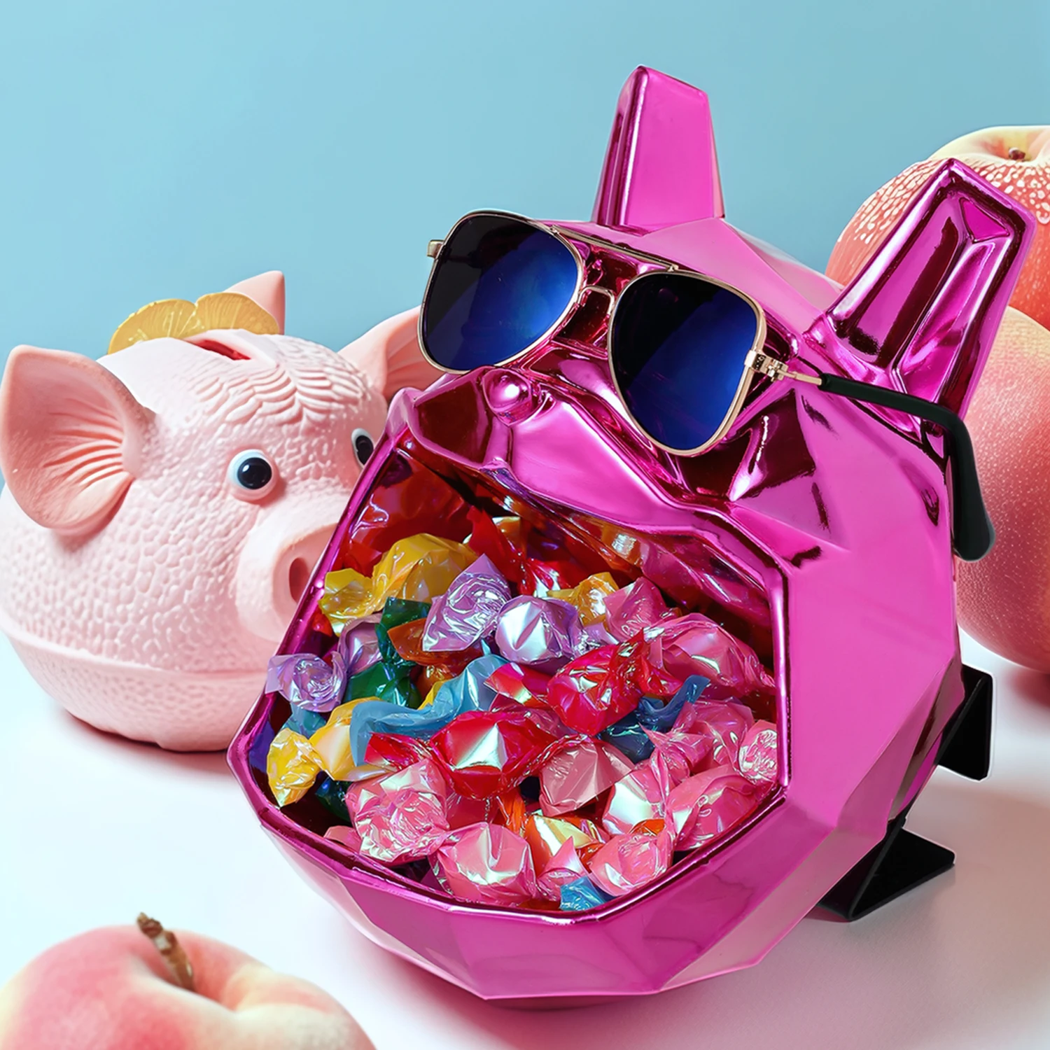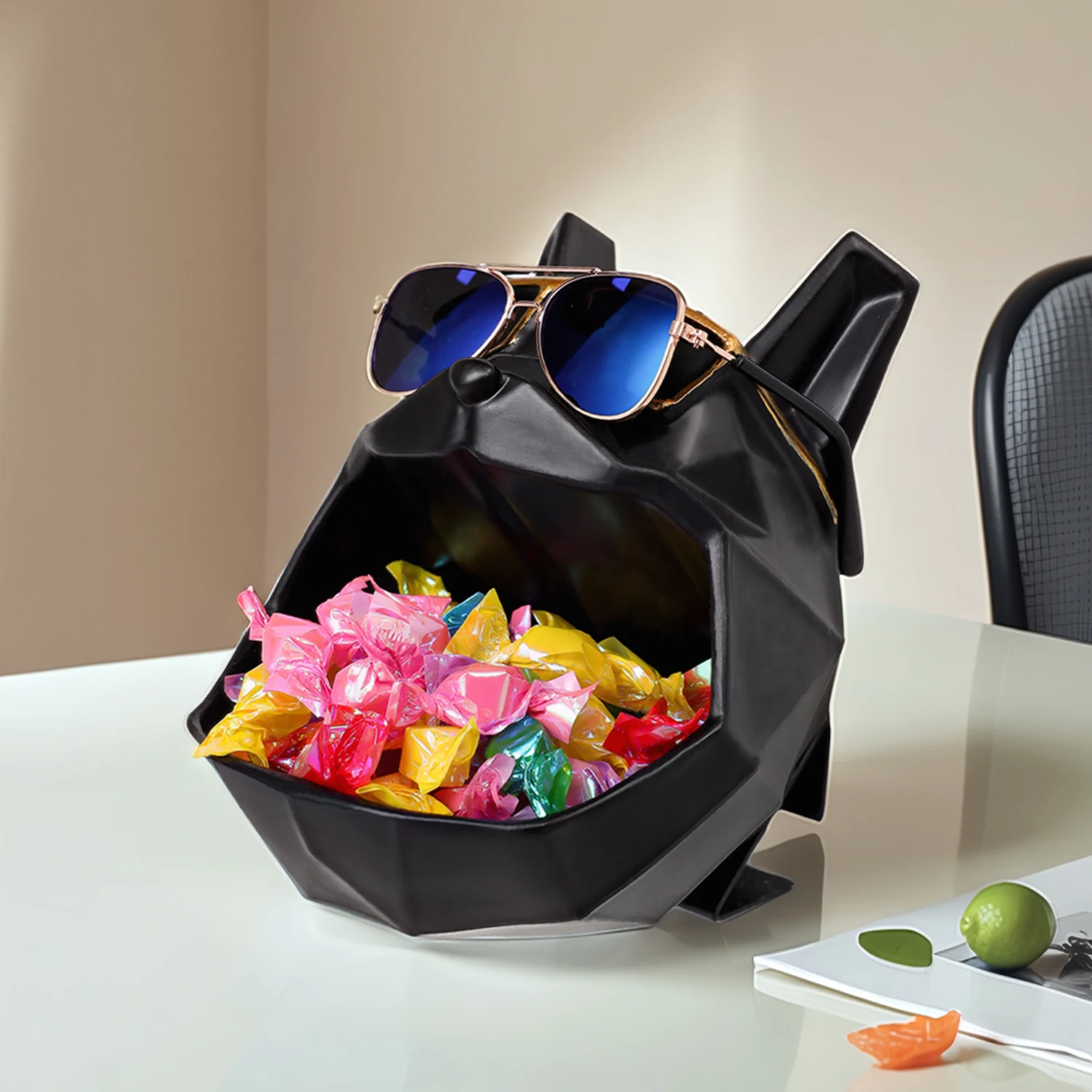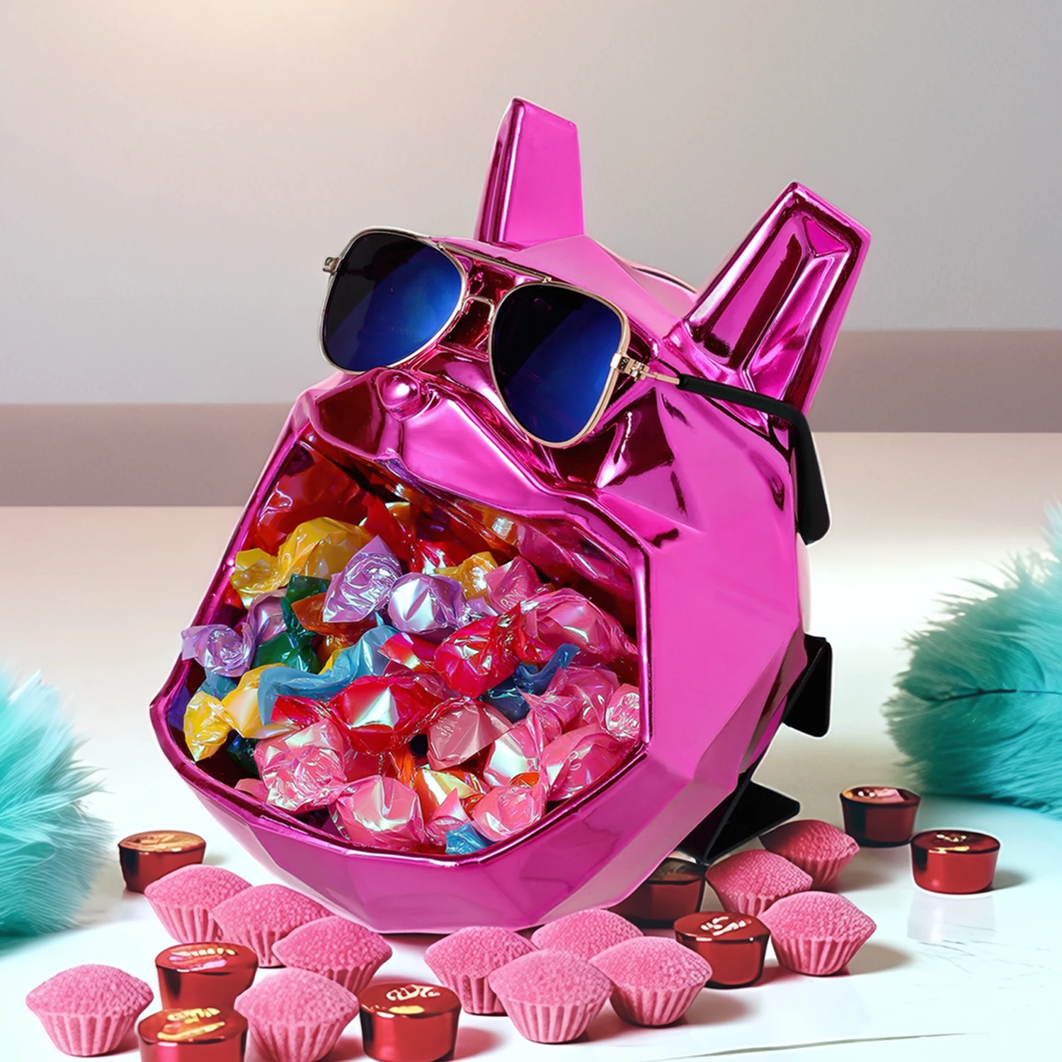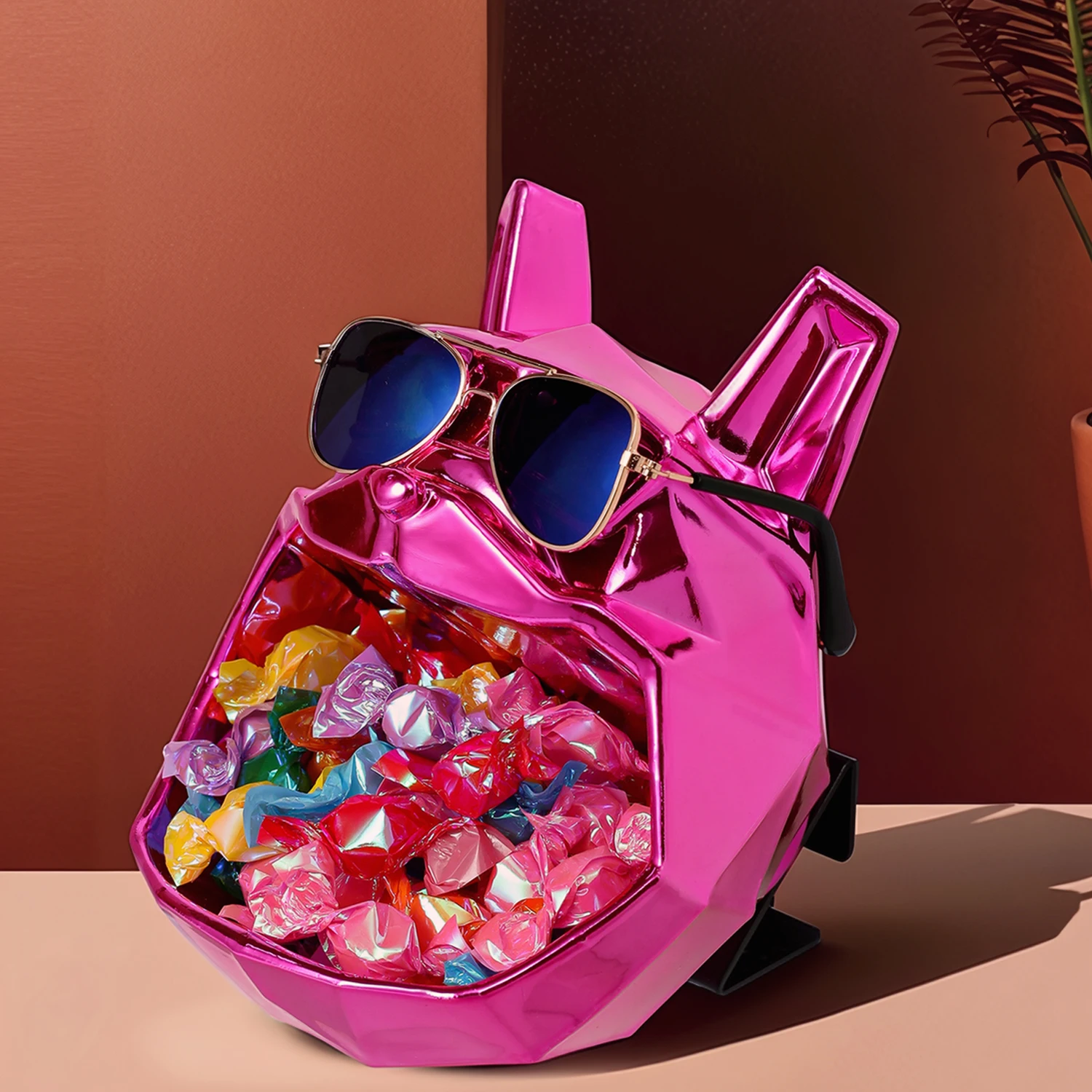 Polygon Bulldog Dog Head Figurine with Storage Electroplating Golden Silver Solid Synthetic Resin Sculpture Figurine Home Decor